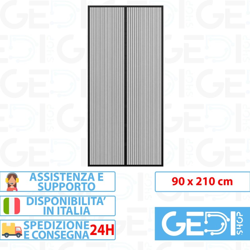 Tenda Zanzariera Magnetica Con Calamita 90 x 210 Cm Nera Per Porta Balcone
