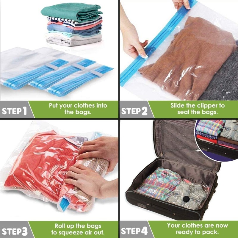 - Risparmia fino all'80% di spazio - Questo sacchetto sottovuoto riduce il volume dell'80%. Ideale per articoli stagionali o indumenti invernali poco ingombranti. Risparmia fino a 4 volte lo spazio nella tua valigia, nello zaino o nell'armadio.
