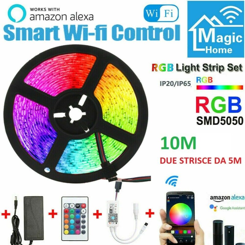 Striscia LED RGB 10M Smart Wi-Fi Google Home Amazon Alexa