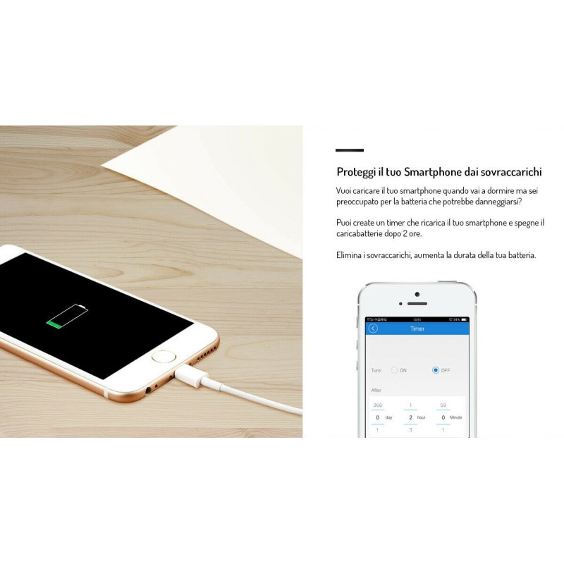 - Schedulazioni per attivare/disattivare automaticamente la presa.