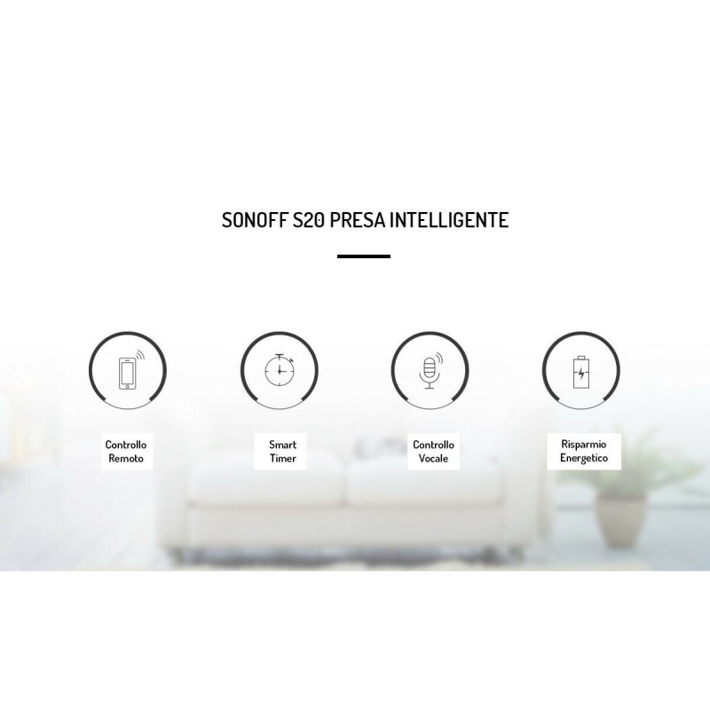Sonoff S20 è una presa intelligente controllabile da smartphone tramite l'app eWelink. Gli utenti possono convertire istantaneamente qualsiasi spina in una presa intelligente con molteplici funzioni controllabili tramite smartphone.