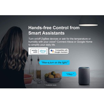 - Controllo a mani libere da Smart Assistant Accendi / spegni i dispositivi ZigBee o chiedi la temperatura o l'umidità con la tua voce? Collega Alexa o Google Home per semplificare la tua vita quotidiana.