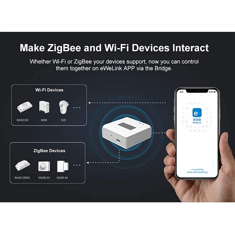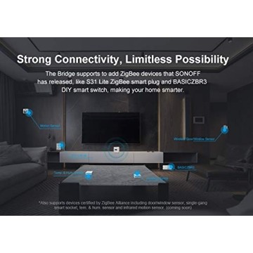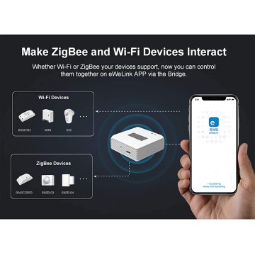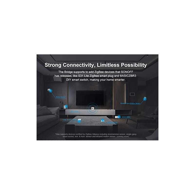 - Connettività forte, possibilità illimitate The Bridge supporta l'aggiunta di dispositivi ZigBee che SONOFF ha rilasciato, come lo smart plug S31 Lite Zigbee e lo smart switch BASICZBR3 DIY, rendendo la tua casa più intelligente.