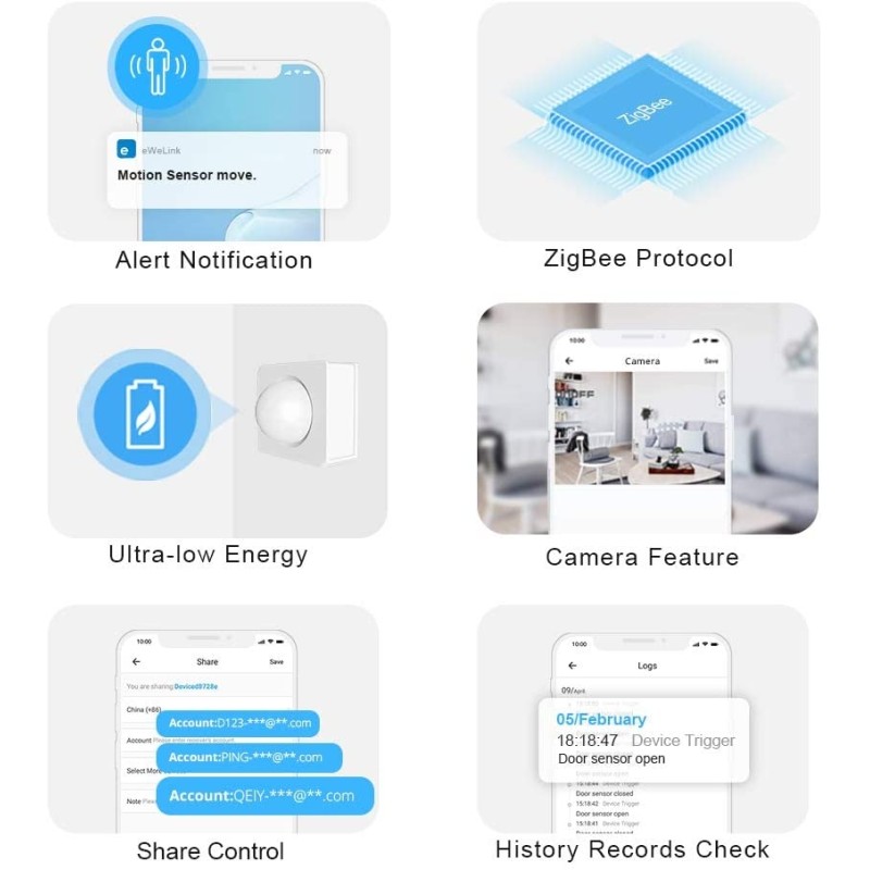 - ? Vanta una distanza di rilevamento di 6 M e un angolo di visione di 110 °. Puoi condividere il sensore con la tua famiglia per tenere insieme gli occhi sulla tua casa. Controllo dei record cronologici di 3 mesi.