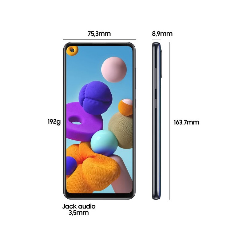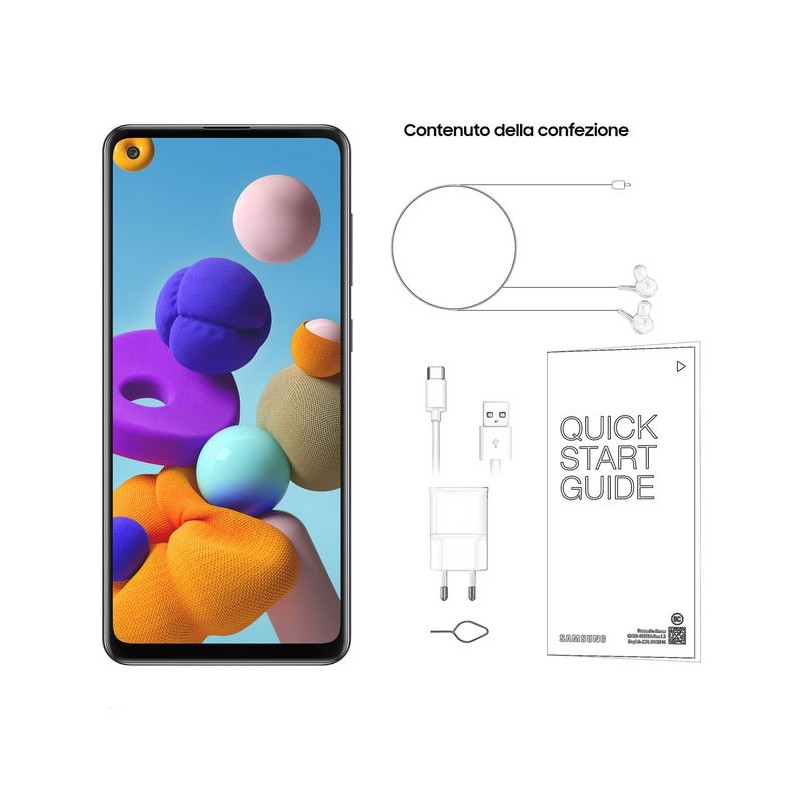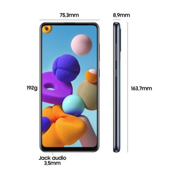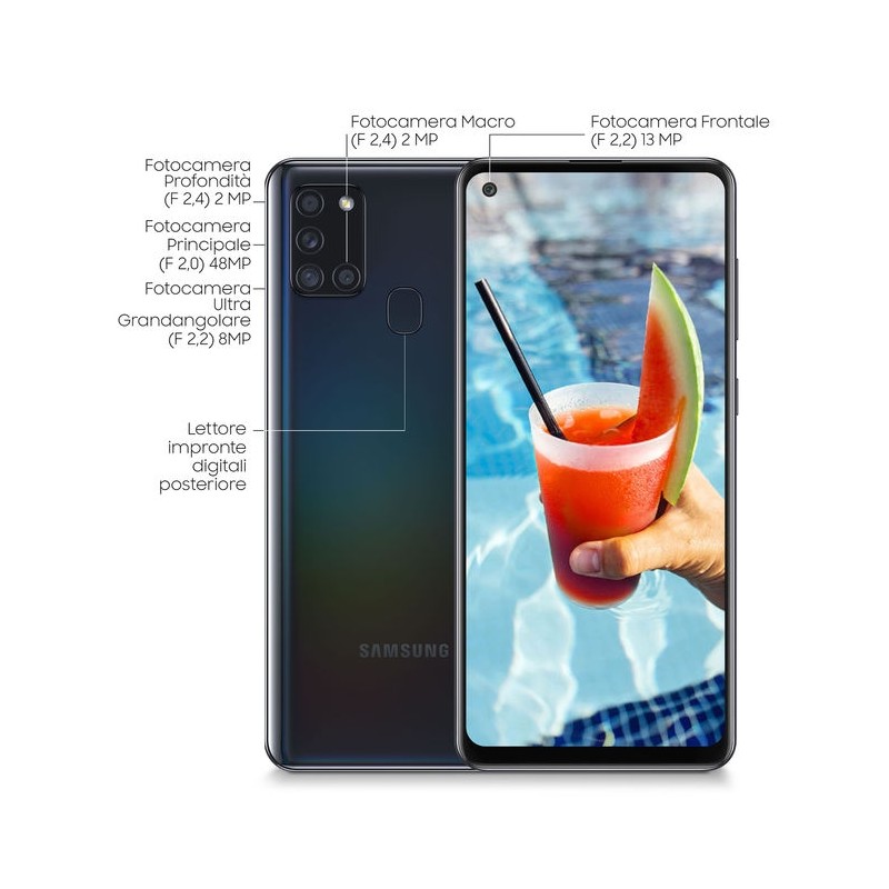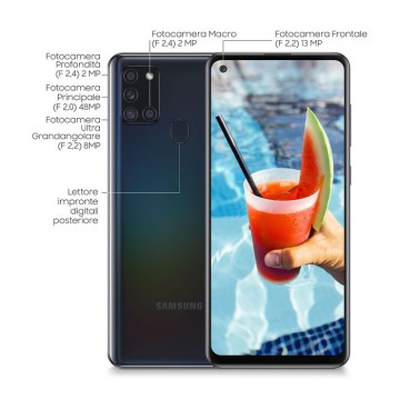 Samsung Galaxy A21s è un smartphone Android completo, che non ha molto da invidare ai dispositivi più avanzati. Sorprende il display Touchscreen da 6.5 pollici che pone questo Samsung al vertice della categoria. Risoluzione di 1600x720 pixel. Sul versante delle funzionalità a questo Samsung Galaxy A21s non manca davvero nulla. A cominciare dal modulo LTE 4G che permette un trasferimento dati e una navigazione in internet eccellente, passando per la connettività Wi-fi e il GPS. Questo Samsung Galaxy A21s è un prodotto con pochi competitor per ciò che riguarda la multimedialità grazie alla fotocamera da ben 48 megapixel che permette di scattare foto fantastiche con una risoluzione di 8000x6000 pixel e di registrare video in fullHD alla risoluzione di 1920x1080 pixel. Lo spessore di 8.9mm è contenuto e rende questo Samsung Galaxy A21s molto interessante.